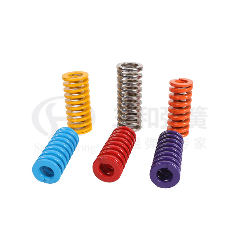 模具彈簧廣泛應用于沖壓模、金屬壓鑄模、塑膠模具以及其他彈性運動精密機械設備、汽車等領域。模具彈簧材質一般選用鉻合金鋼。鉻合金彈簧鋼具有耐高溫、剛性大、壽命長的特點。模具簧采用不同顏色區(qū)分彈簧的負荷,黃色為輕小負荷、銀灰為特輕負荷 、藍色為輕負荷、紅色為中負荷、綠色為重負荷、咖啡色特重負荷。